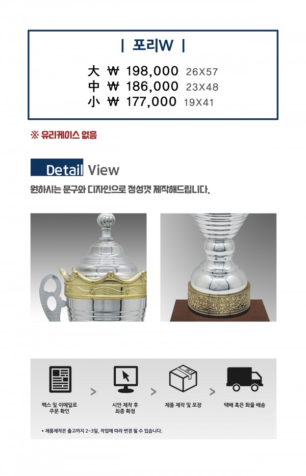 우승컵 트로피 포리W (大 19만 8,000원, 中 18만 6,000원, 小 17만 7,000원) 페이지 정보 작성자 관리자 작성일25-07-04 11:57 조회57회 댓글0건 관련링크 이전글 다음글 목록 본문 이전글 다음글 목록