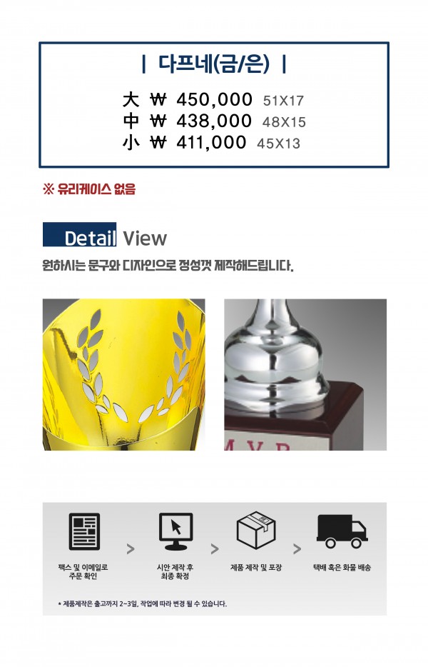 우승컵 트로피 다프네(금/은) (大 45만, 中 43만 8,000원, 小 41만 1,000원) 페이지 정보 작성자 관리자 작성일24-03-23 13:33 조회154회 댓글0건 관련링크 이전글 다음글 목록 본문 이전글 다음글 목록