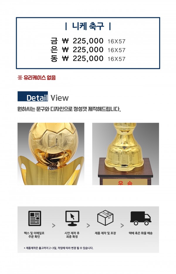 우승컵 트로피 니케 축구 (금 22만 5,000원, 은 22만 5,000원, 동 22만 5,000원) 페이지 정보 작성자 관리자 작성일25-07-09 11:28 조회56회 댓글0건 관련링크 이전글 다음글 목록 본문 이전글 다음글 목록