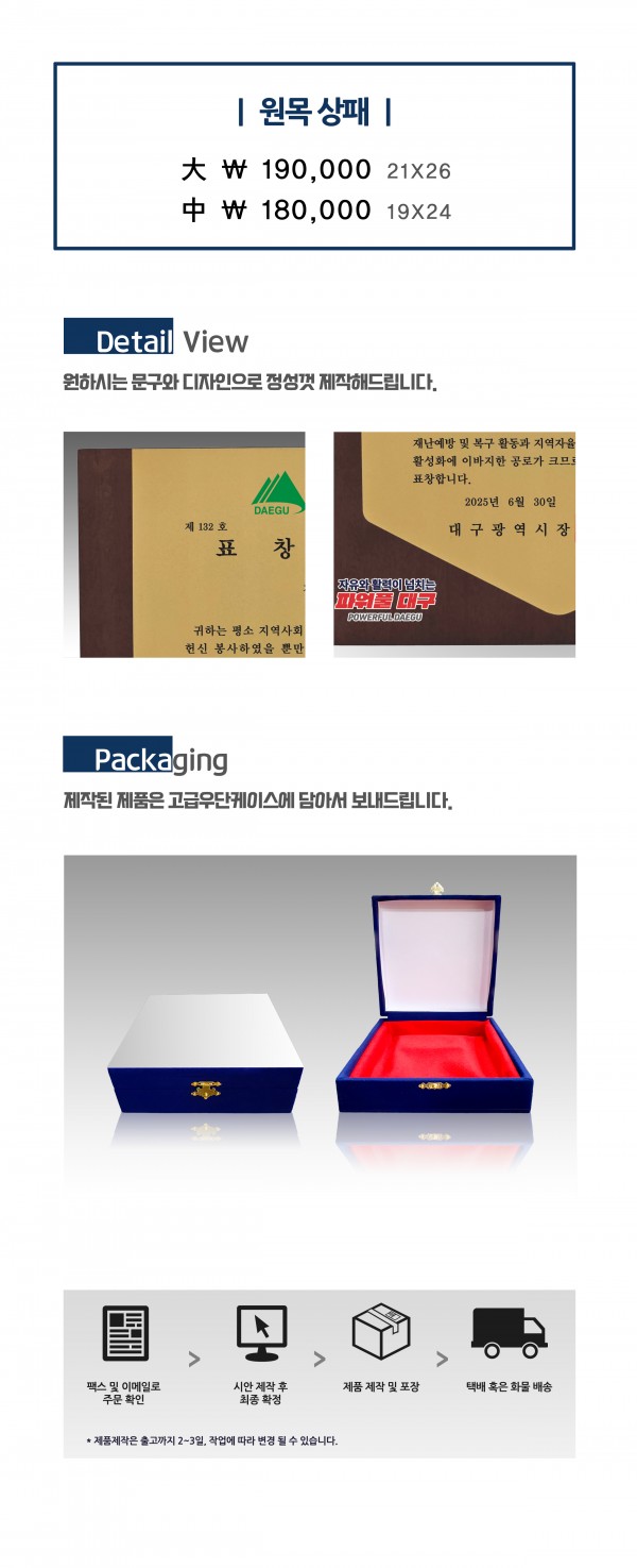 일반상패 (SWT-280) 원목 상패 (大 19만, 中 18만) 페이지 정보 작성자 관리자 작성일25-07-18 16:44 조회72회 댓글0건 관련링크 이전글 다음글 목록 본문 이전글 다음글 목록