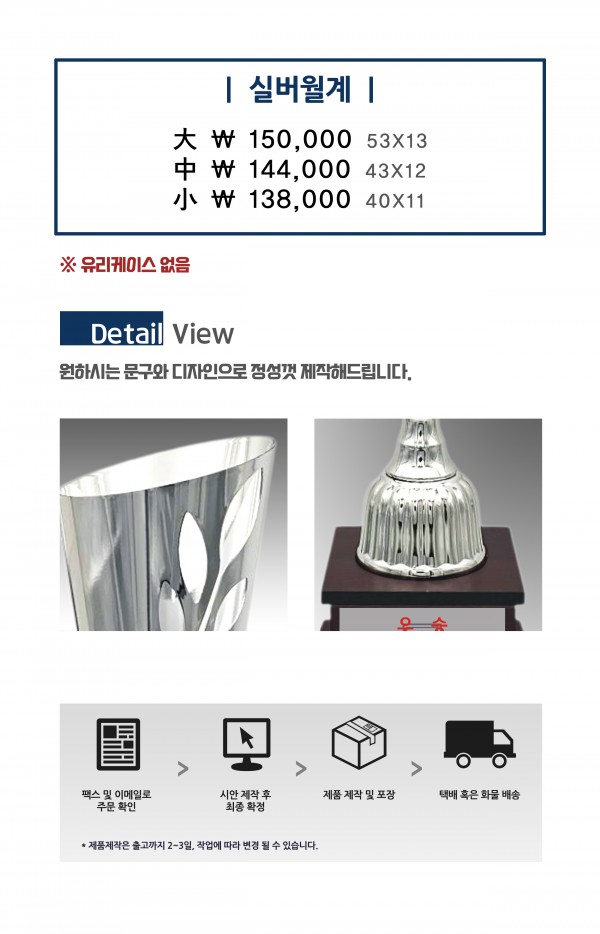 우승컵 트로피 실버월계 (大 15만, 中 14만 4,000원, 小 13만 8,000원) 페이지 정보 작성자 관리자 작성일25-08-21 11:38 조회52회 댓글0건 관련링크 이전글 다음글 목록 본문 이전글 다음글 목록