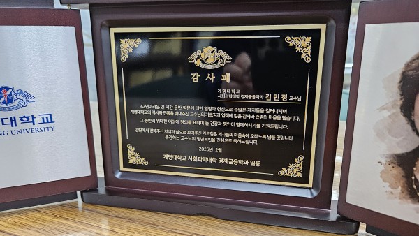 주문제작 계명대학교 사회과학대학 경제금융학과 감사패 페이지 정보 작성자 관리자 작성일26-02-07 12:19 조회16회 댓글0건 관련링크 이전글 다음글 목록 본문 이전글 다음글 목록