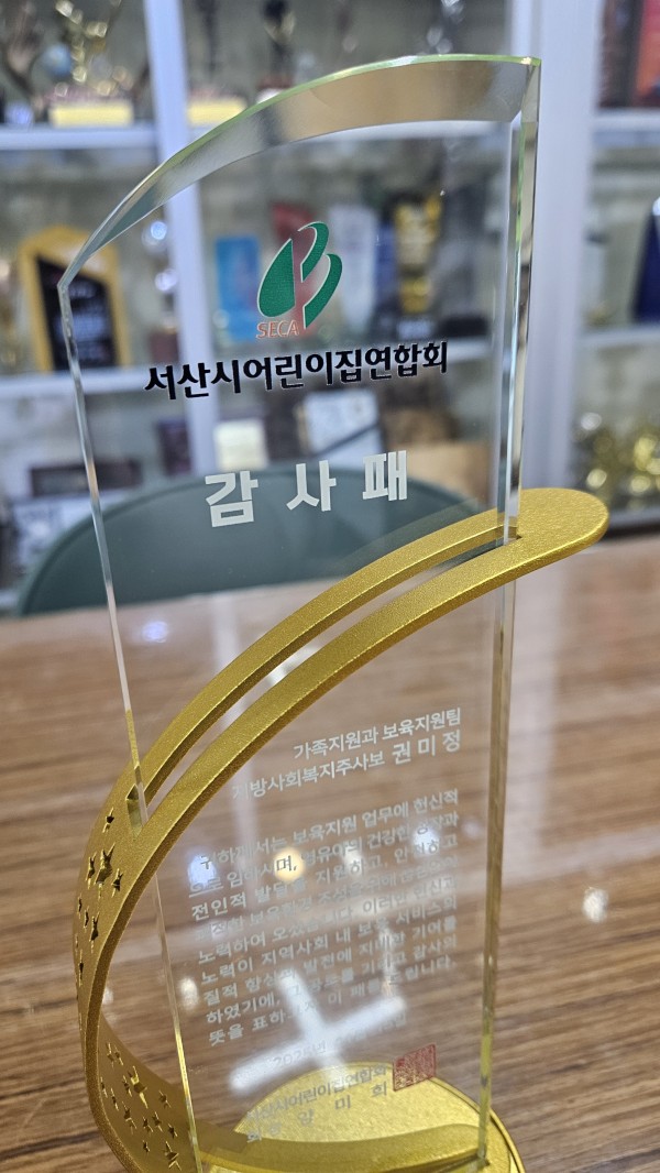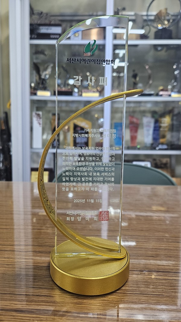 서산시어린이집연합회 감사패