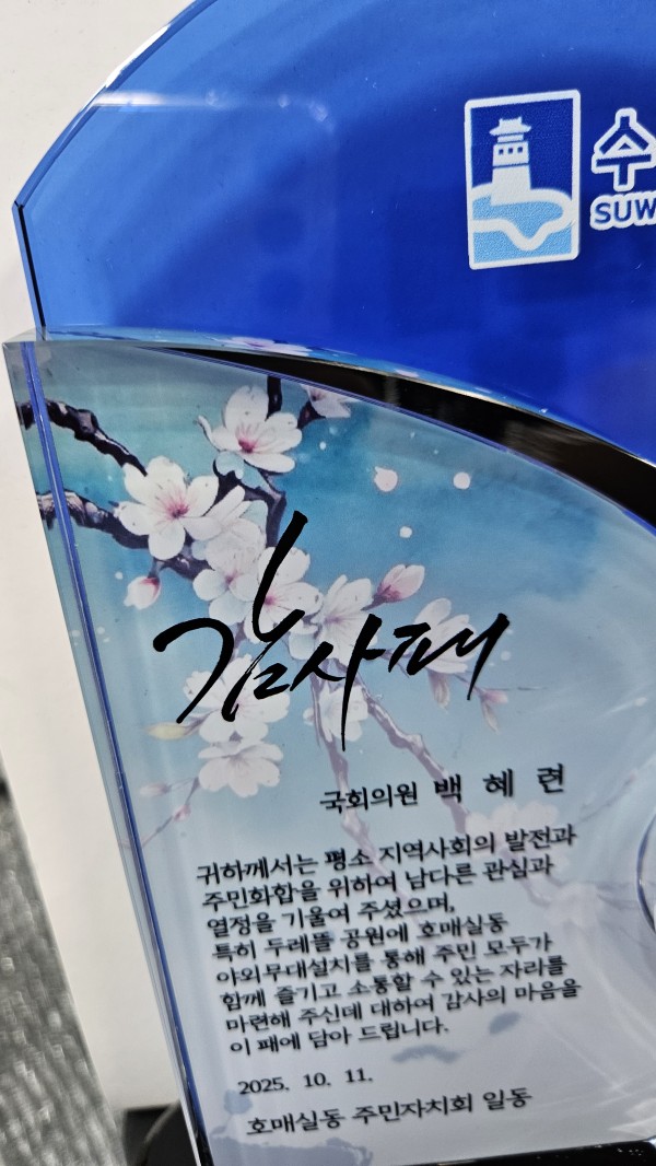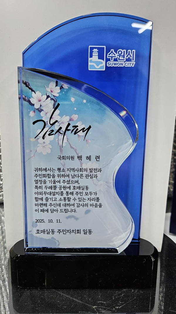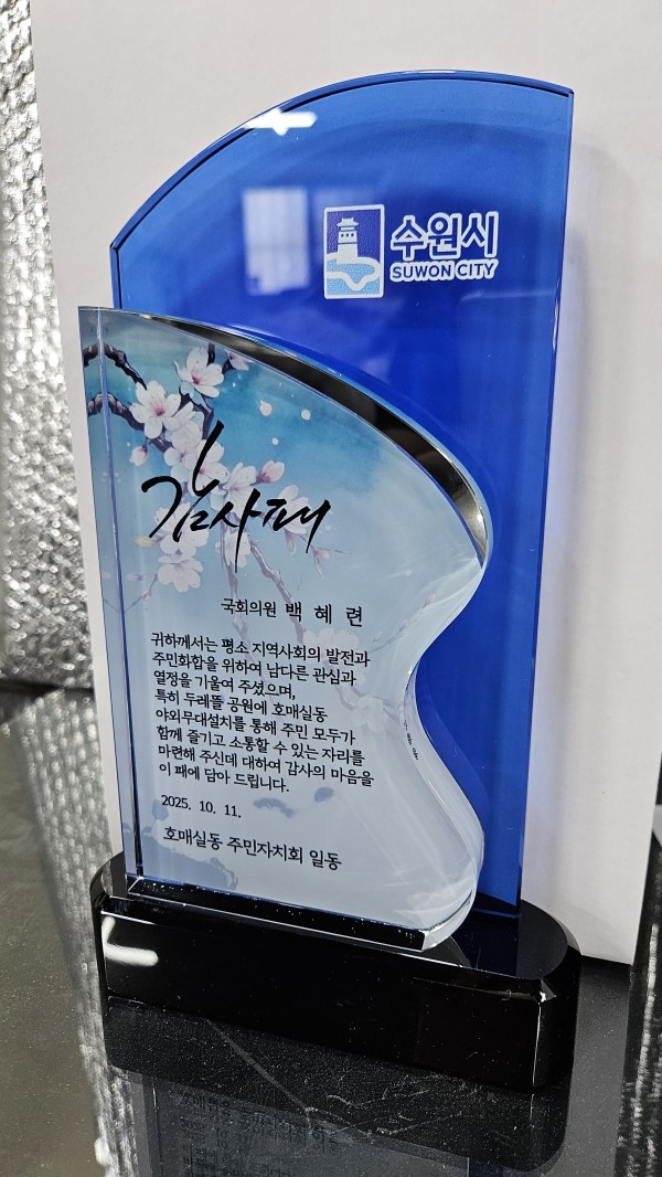 주문제작 호매실동 주민자치회 (국회의원 백혜련) 감사패 페이지 정보 작성자 관리자 작성일26-02-07 14:31 조회20회 댓글0건 관련링크 이전글 다음글 목록 본문 이전글 다음글 목록